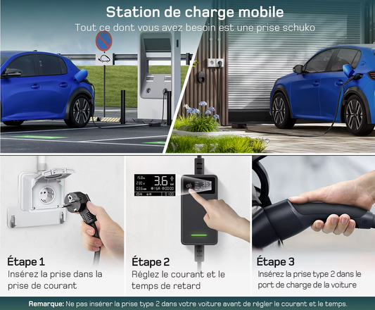 Chargeur Portable Type 2 (3,7kW) pour Véhicules Électriques